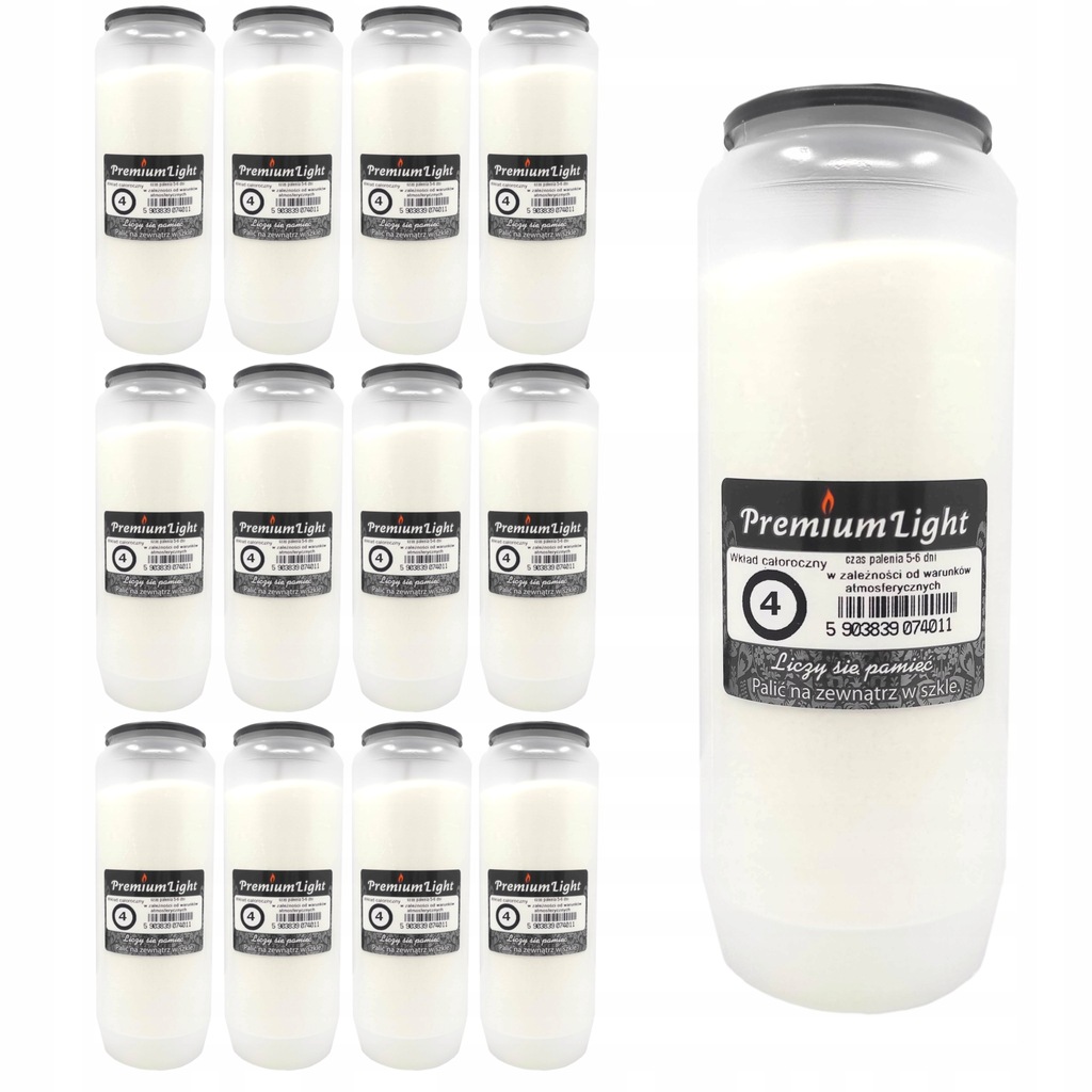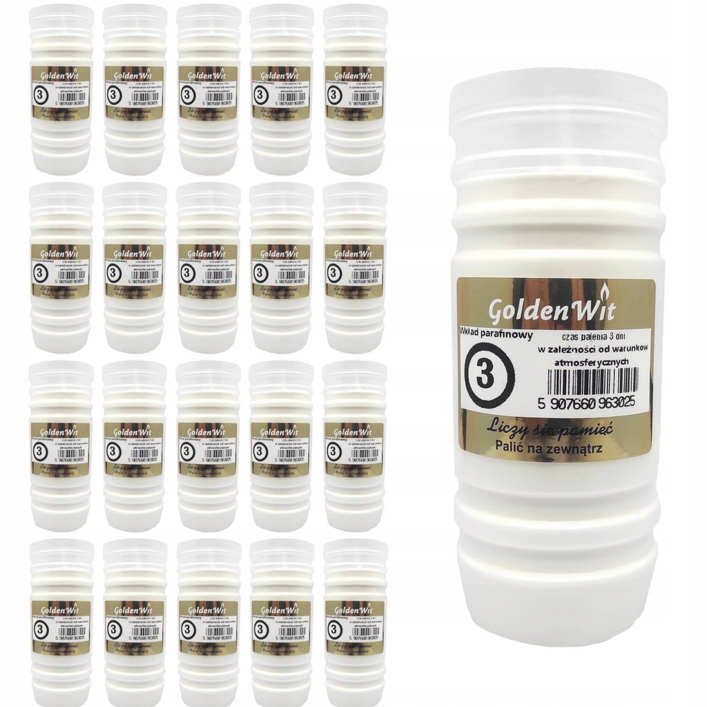 Wkłady parafinowe to najpopularniejszy wybór na wiosnę i lato. Parafina ma wysoką temperaturę topnienia (ok. 55°C), więc wkład nie rozplywa się w upale i zachowuje kształt. Dostępne w różnych rozmiarach i czasach palenia: od 24 godzin do 5 dni.